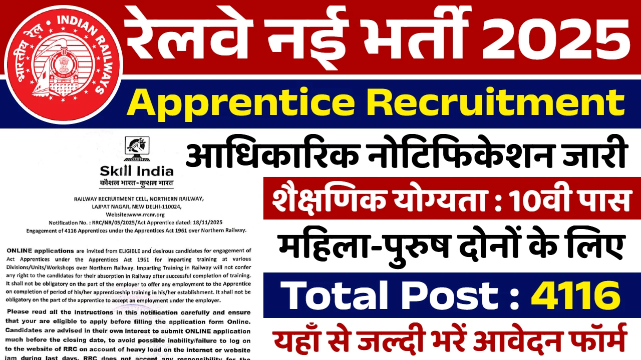Railway Vacancy 2025: रेलवे में 4116 पदों पर नई भर्ती की घोषणा, नवंबर से आवेदन प्रक्रिया शुरू